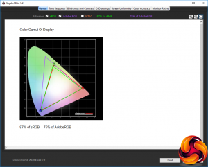 The gamut isn't particularly impressive, with just 97 per cent of sRGB and a lowly 75 per cent of AdobeRGB, which is on a similar level to the budget-oriented Acer ED273.