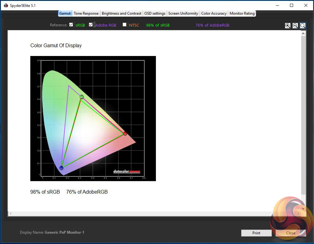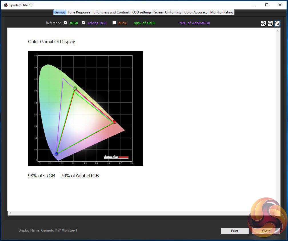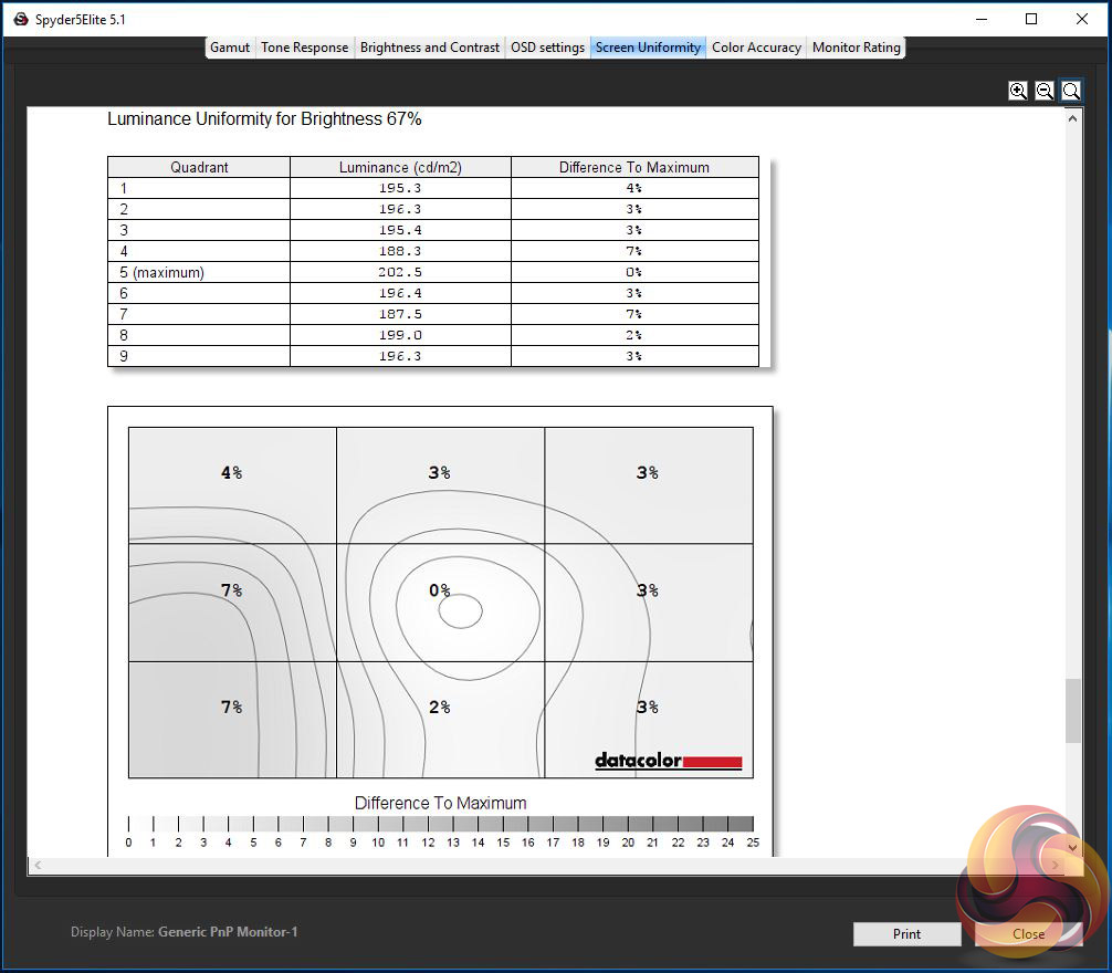 The first run through with the Spyder is completed with the screen at default factory settings. Following a full calibration, the tests are repeated.