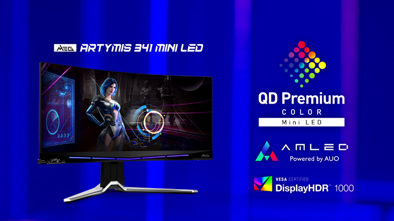The MSI MEG 341 Mini LED monitor will feature a 34-inch AUO Optronics AmLED panel with an 800R curvature, 21:9 aspect ratio and a peak brightness of 1000nits, enough to certify it as VESA DisplayHDR 1000. Like the MPG Artymis 273CQRX-QD, the MPG Artymis 273CQR-QD and the MAG 274QRF-QD, the MEG 341 will also meet the QD premium colour standard, ensuring a large colour spectrum and improved display calibration.