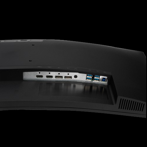 Available display outputs include 2x DisplayPort 1.4a and 2x HDMI 2.0 ports. Additionally, there are 4x USB 3.0 ports and an earphone jack. The included stand has height, tilt and swivel adjustments.