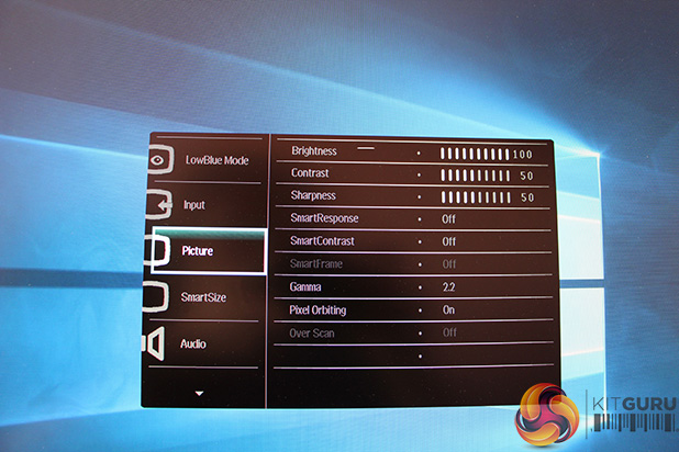 The on-screen display follows a familiar Philips blueprint. That means you get a system that’s easy to navigate – but not an OSD that looks particularly smart.