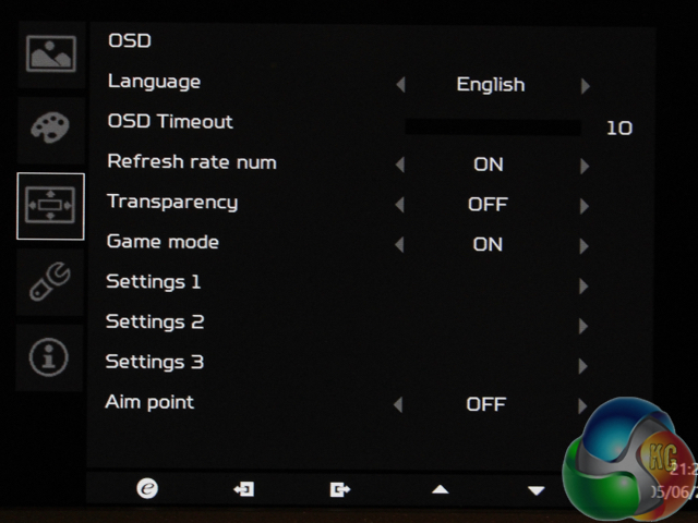 And the transparency setting adjusts the brightness of the OSD. Here it is at 60%, which is why the above image is barely legible.