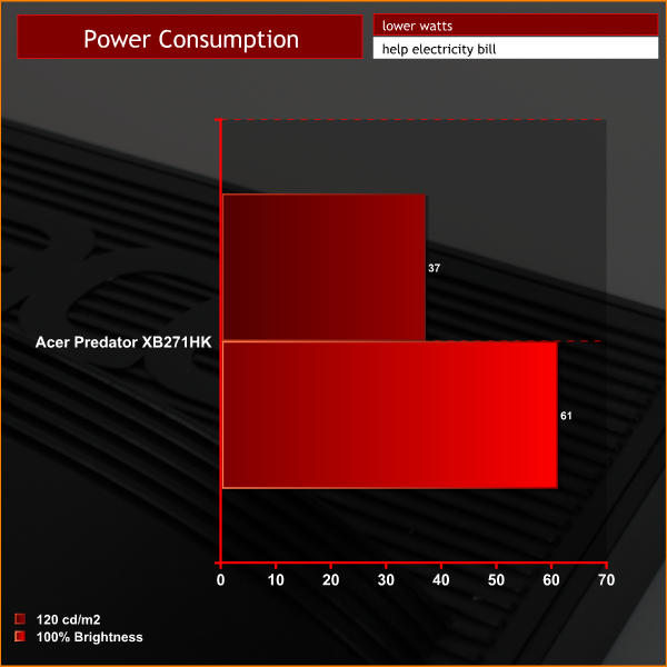 Power consumption is perfectly reasonable, with a result at 100% brightness that may look high, but is actually relatively efficient and to be expected given the large number of pixels on a 27-inch 4K display.
