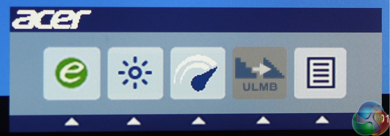 It’s controlled by any of the five buttons to the left of the power LED at the front of the XB280HK. Pressing any one of them brings up a main menu of five shortcuts. The function of each then naturally corresponds to the icon above it