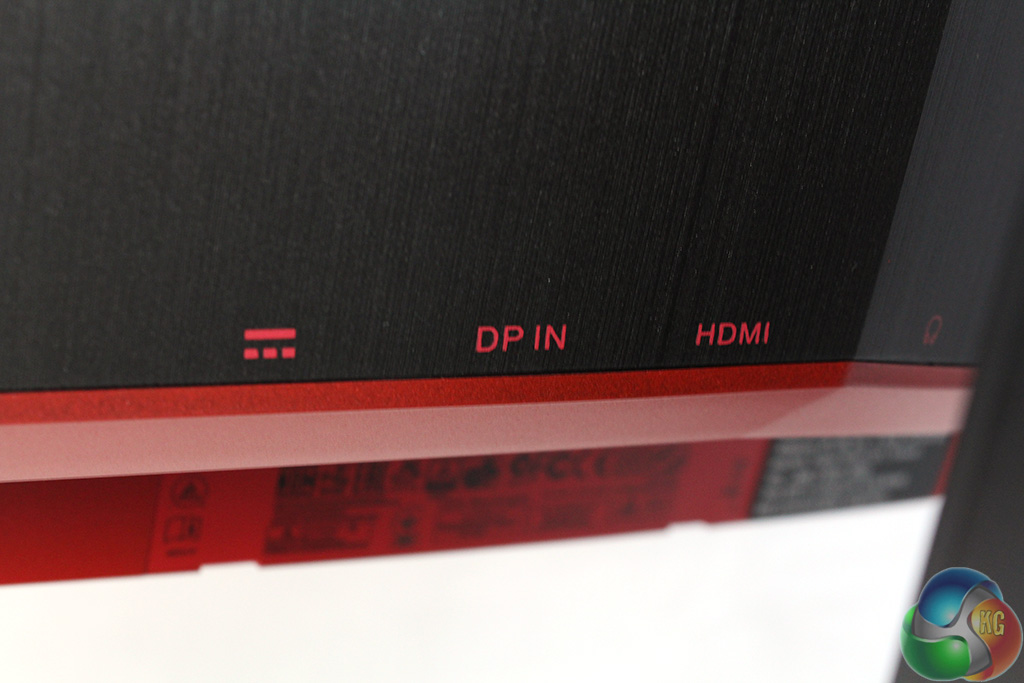 There are only two display inputs, as per the G-Sync 2.0 standard: HDMI 1.4 and DisplayPort 1.2a. Any extra bandwidth from HDMI 2.0 is unnecessary, given the lower screen resolution, and the fact that G-Sync cannot run over HDMI. You can also see the power connector and single 3.5mm audio output connector.