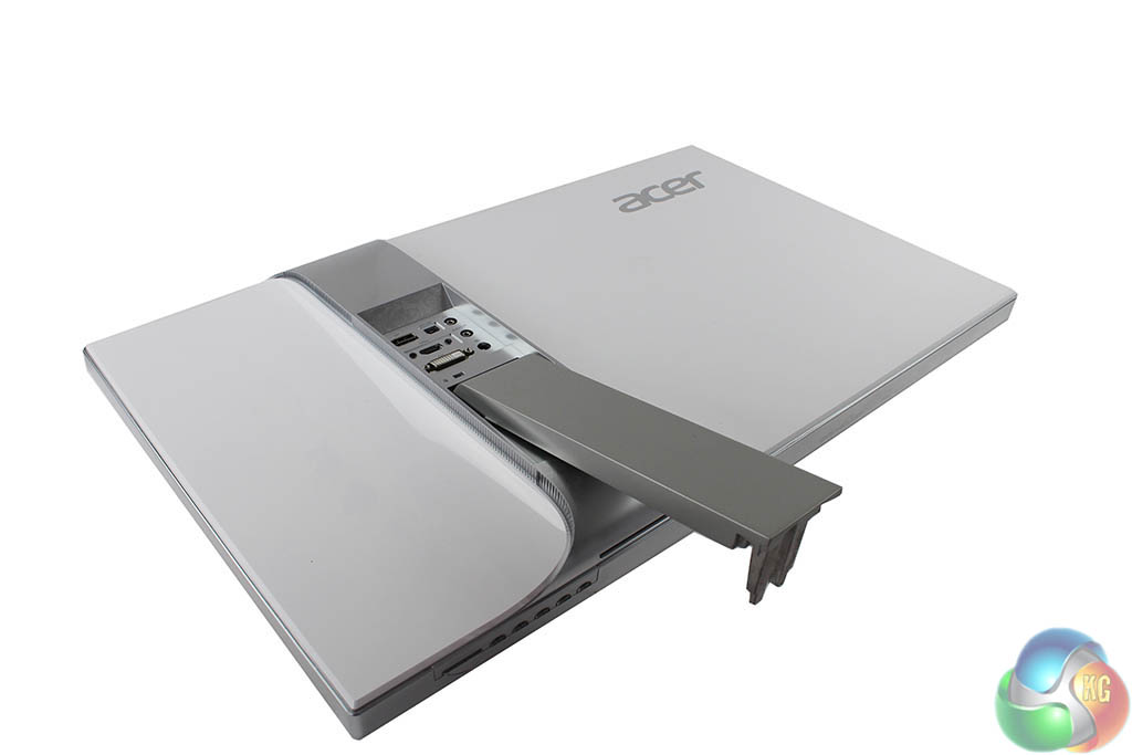 The Acer S277HK comes with the stand already attached to the panel. There’s a small ‘hook’ at the bottom of it for connecting the base to the stand.