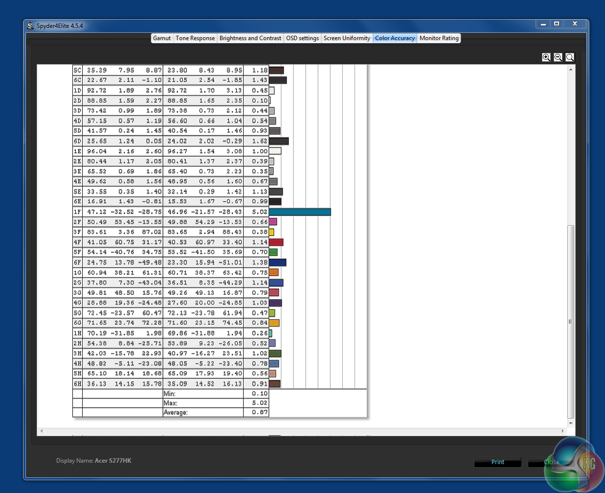 Patch 1F, often a challenge for monitors to display accurately, is the only one that’s seriously out, with a value of 5.02.
