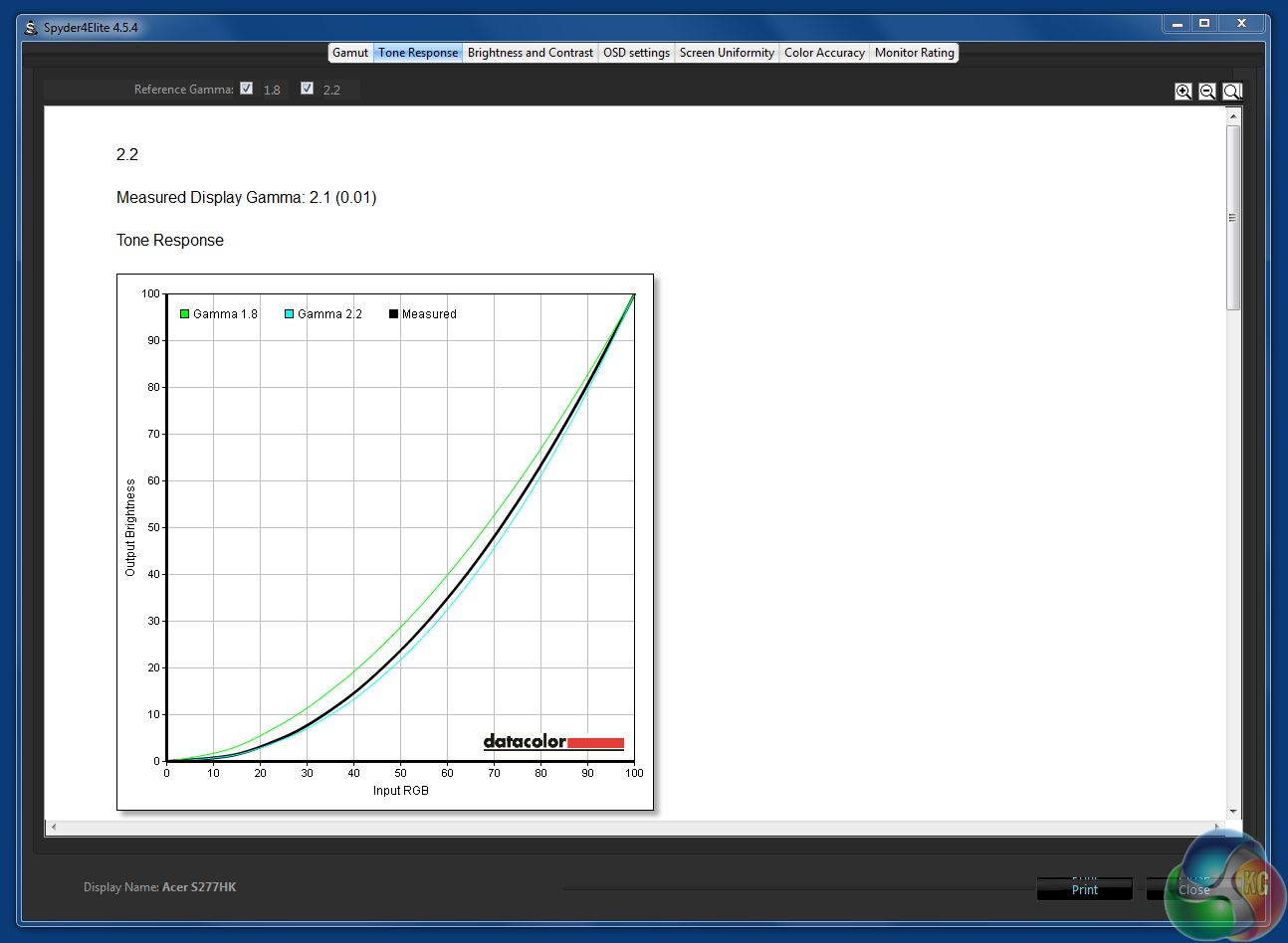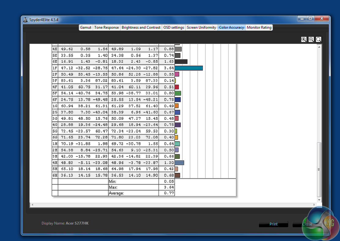 It’s the colour accuracy result that’s really astounding though, with an average Delta E under 1, something rarely seen on an uncalibrated display. We didn’t believe it at first and retested the S277HK, but saw a similar result again.