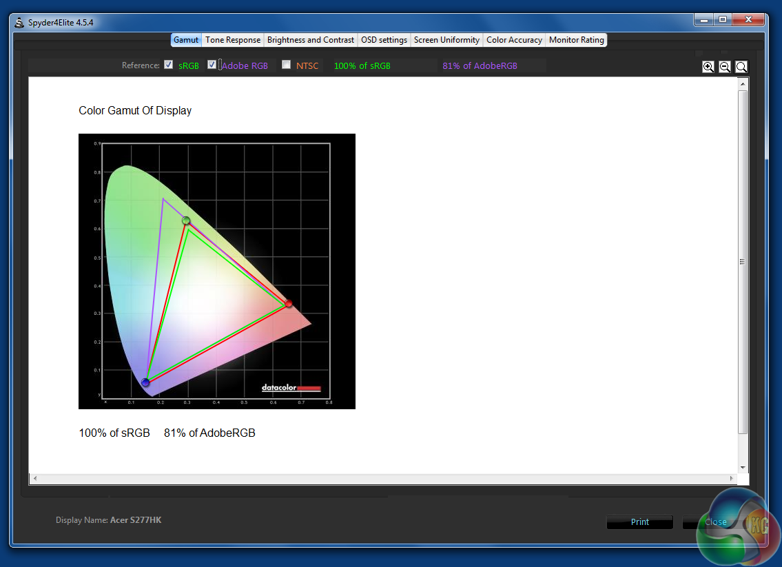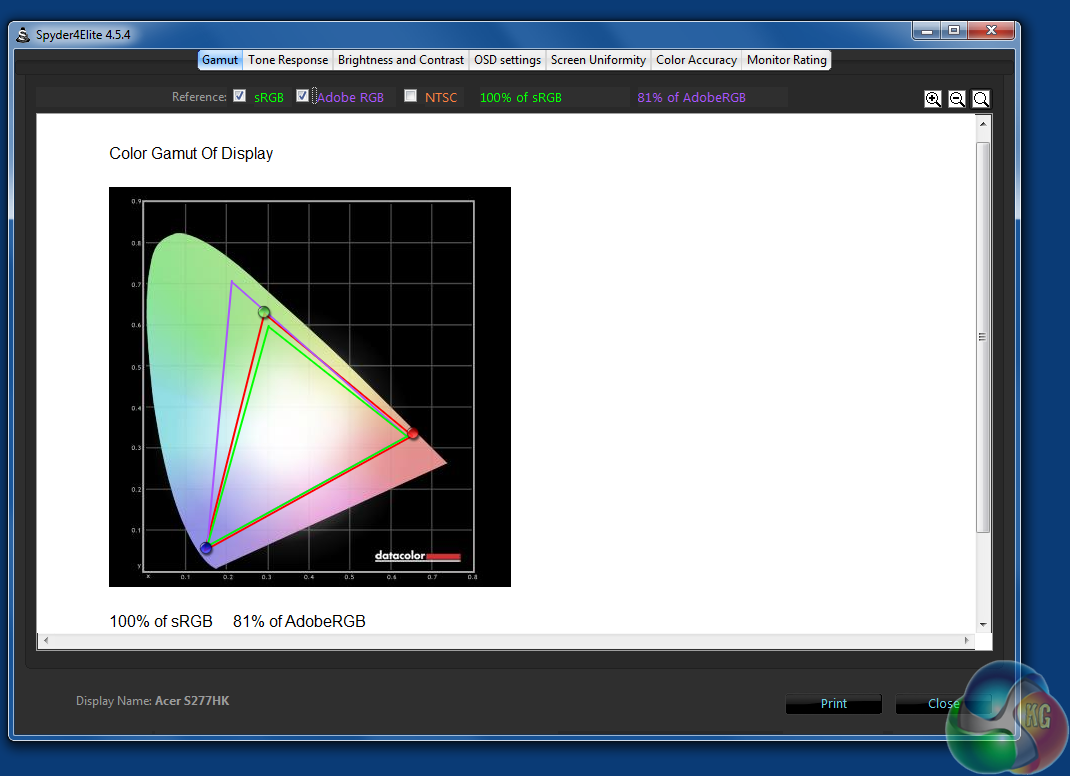 Uncalibrated, the S277HK delivers 100 percent sRGB as well as 81 per cent Adobe coverage. Superb results.