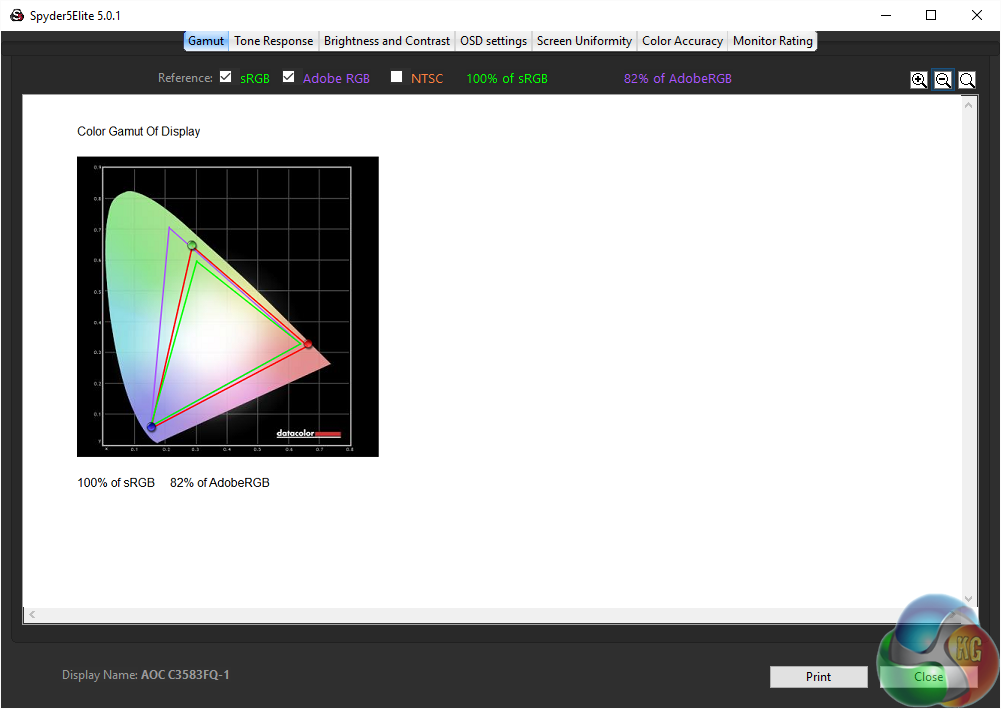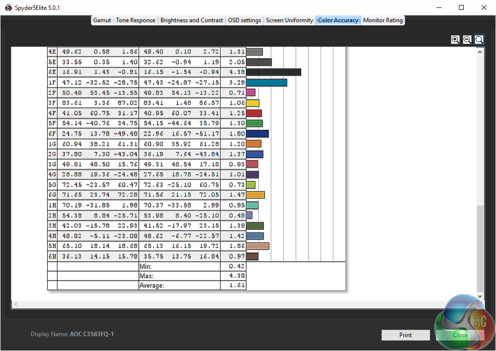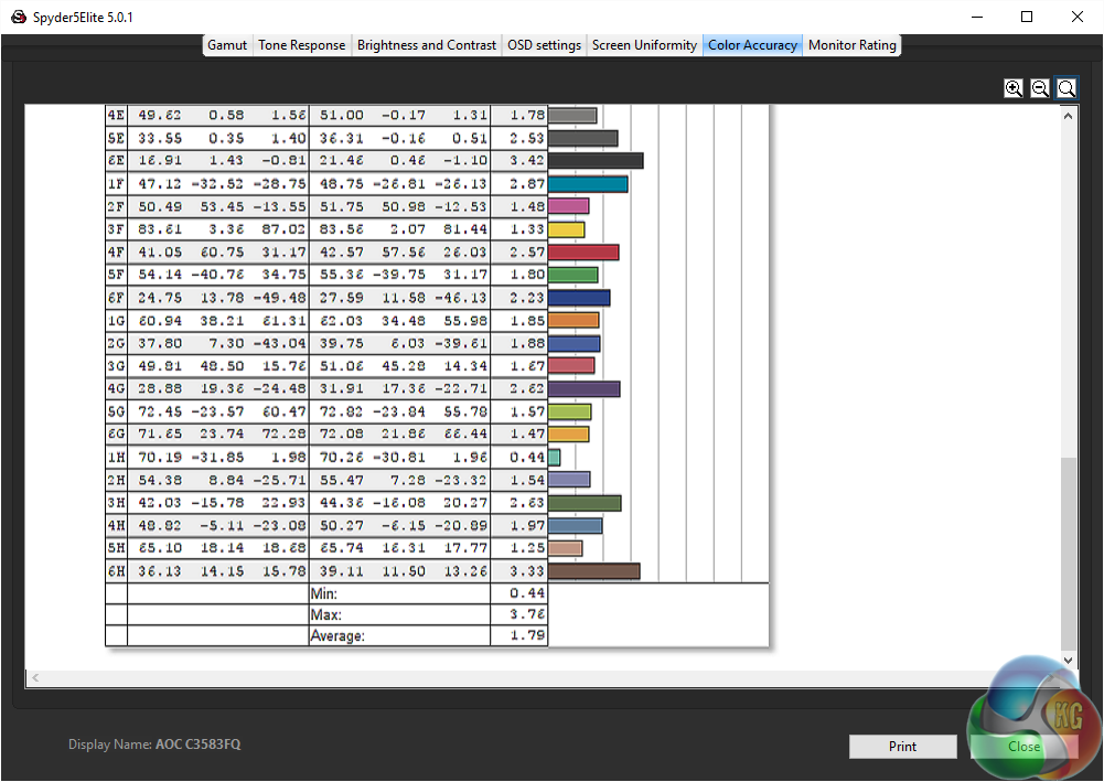 The AOC C3583FQ features an uncalibrated colour accuracy of 1.79 Delta E. A very good result, showing VA screens can be as accurate as any other.