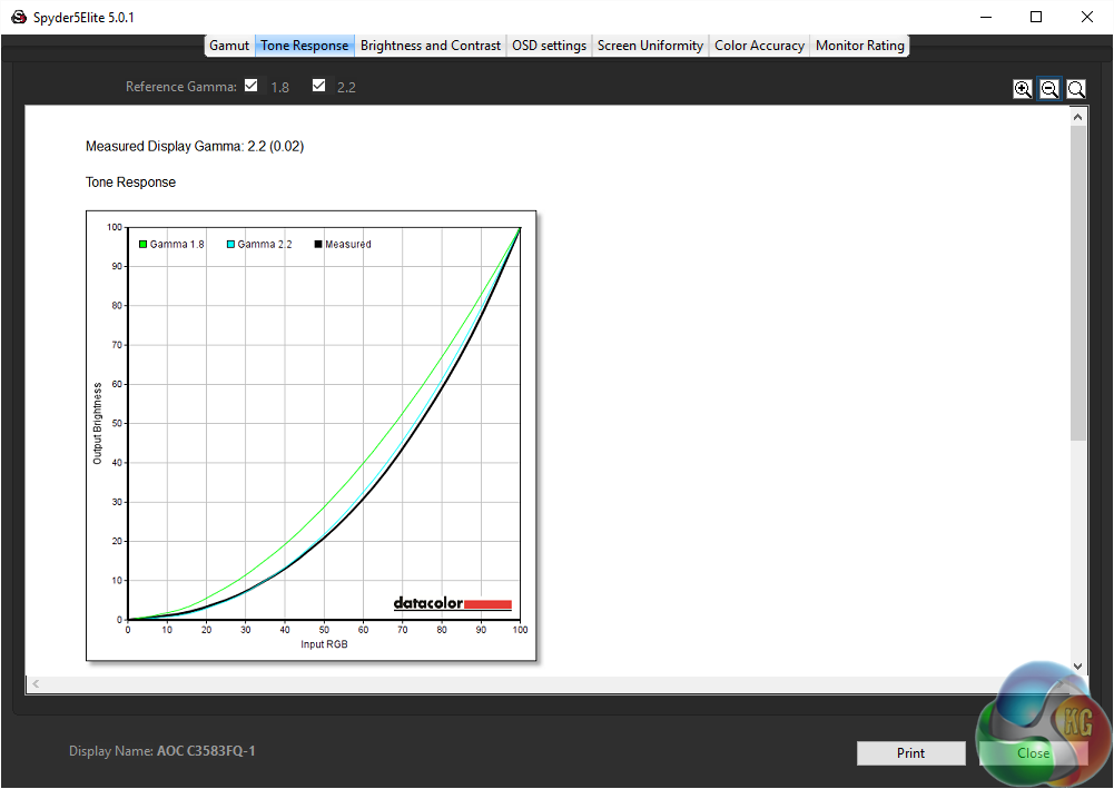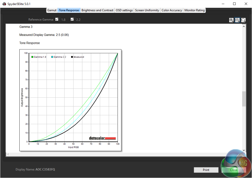 AOC’s three gamma settings are spot on at 2.2, 2.5 and 1.9.