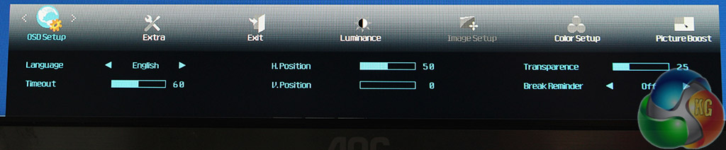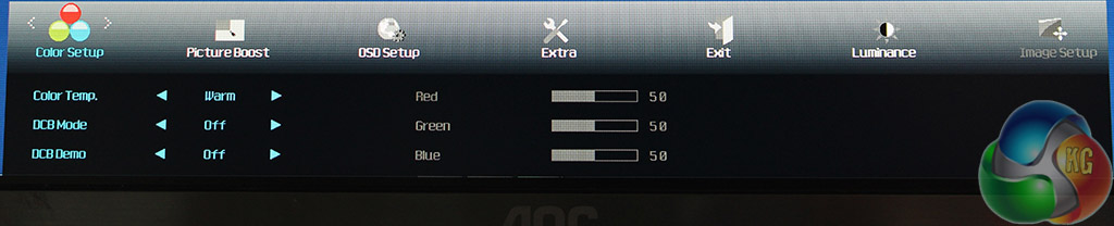 The buttons used to control the OSD aren’t the only similarity with other displays from AOC, since the menu options and factory default settings are almost identical too.