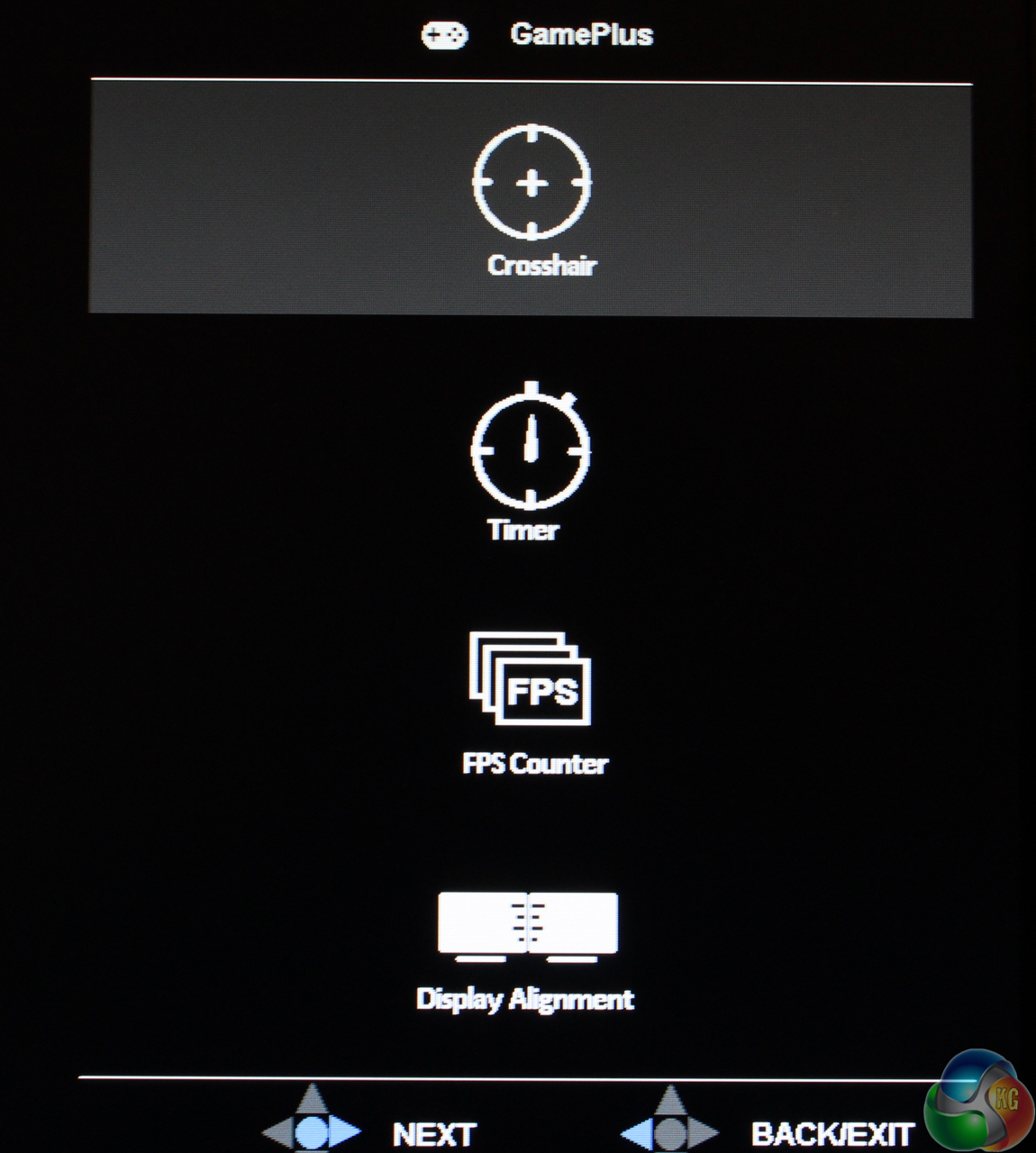 It also has a setting called GamePlus, which can be accessed from a shortcut as well. This works exactly as it does on more high end Asus displays, with a choice of on-screen crosshairs and an FPS counter, which works perfectly well when the screen is in adaptive sync mode.