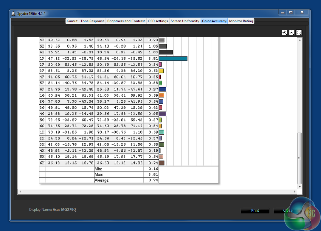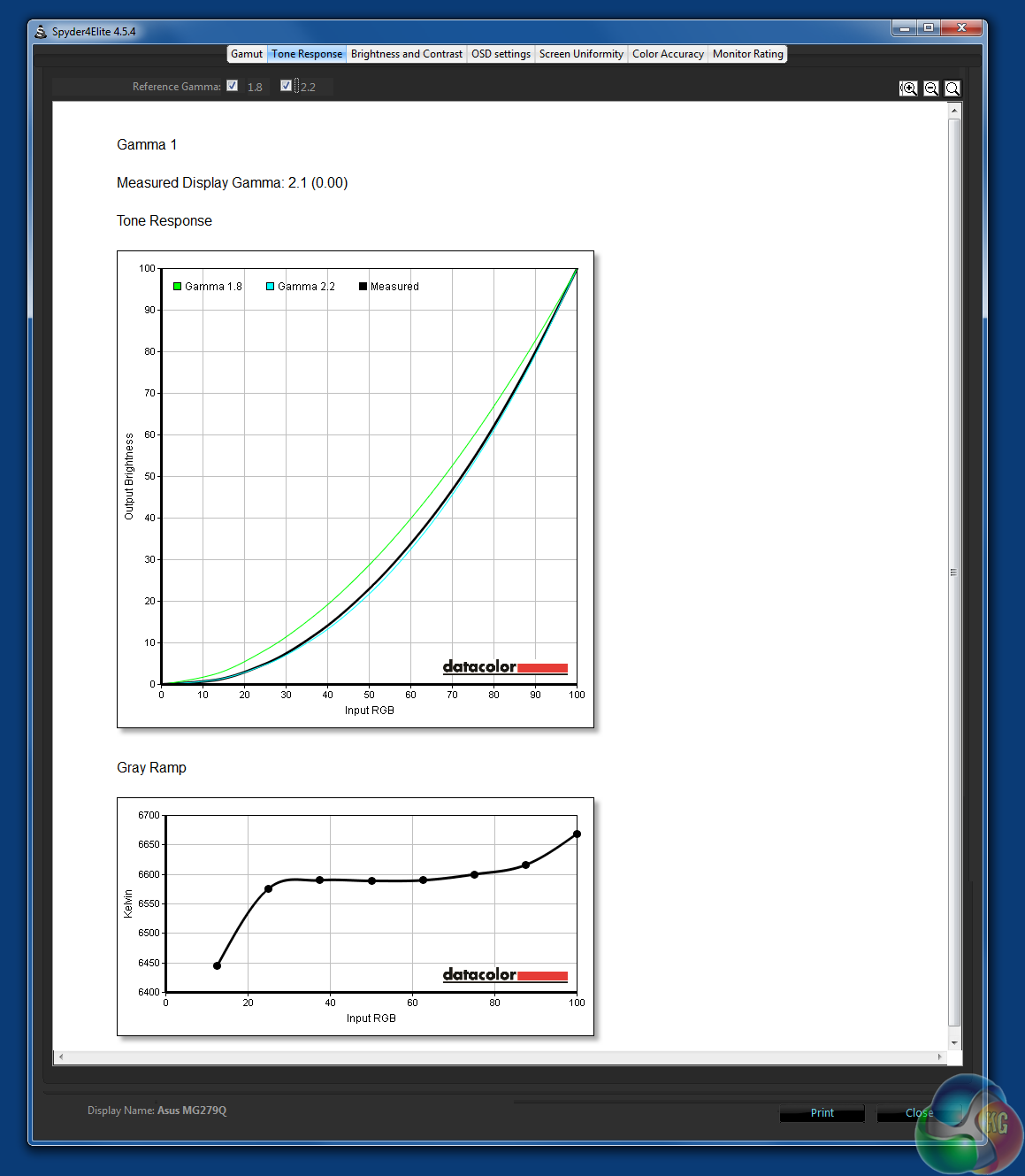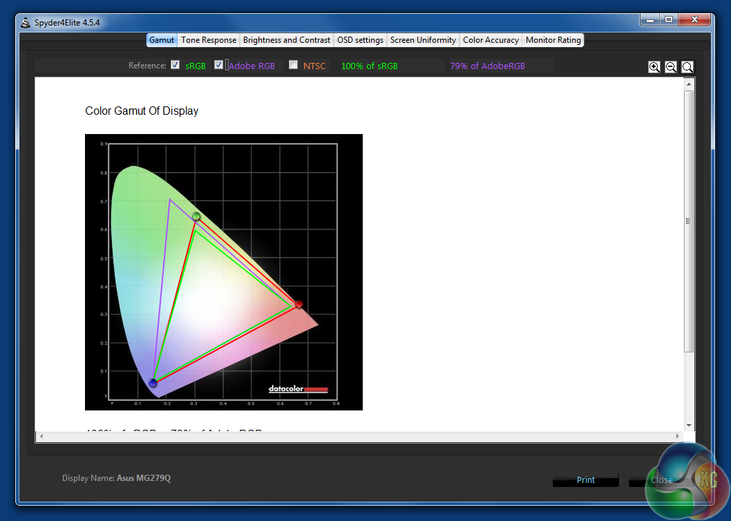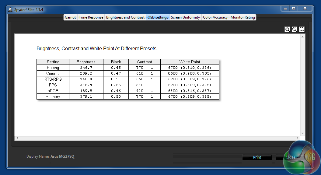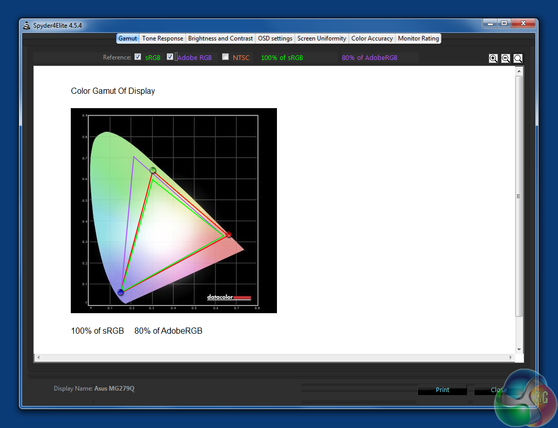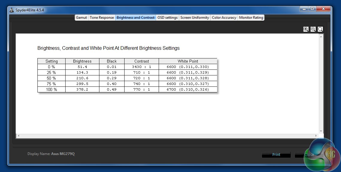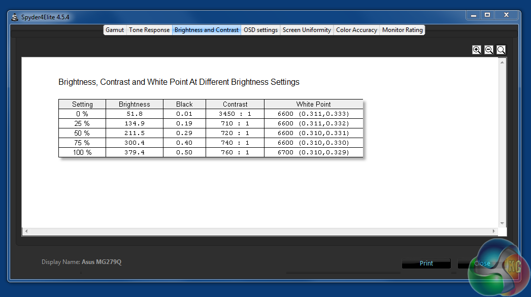 To test how good the MG279Q is as a display in general, we used a Spyder4 Colorimeter, measuring the screen’s brightness, contrast levels and so on without calibrating it to see how it performs out of the box, then calibrated it and measured its colour levels again.