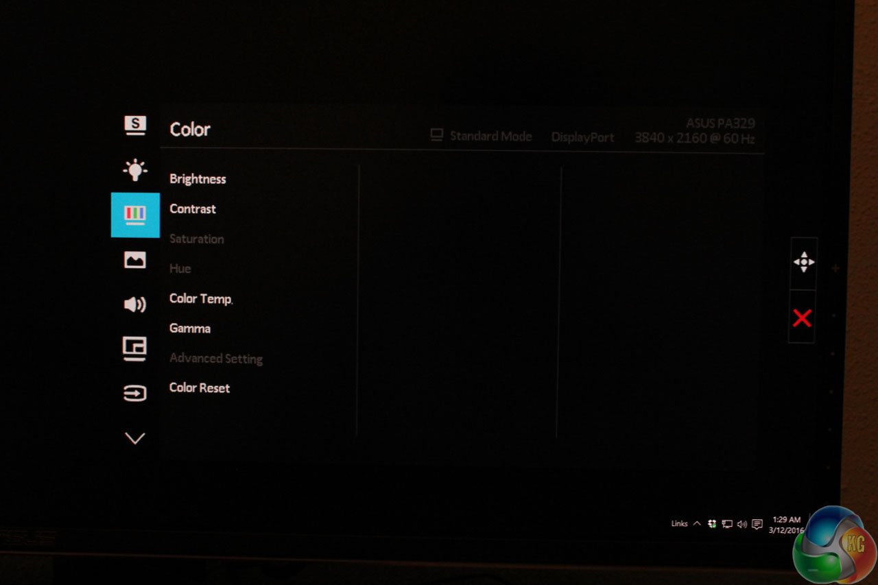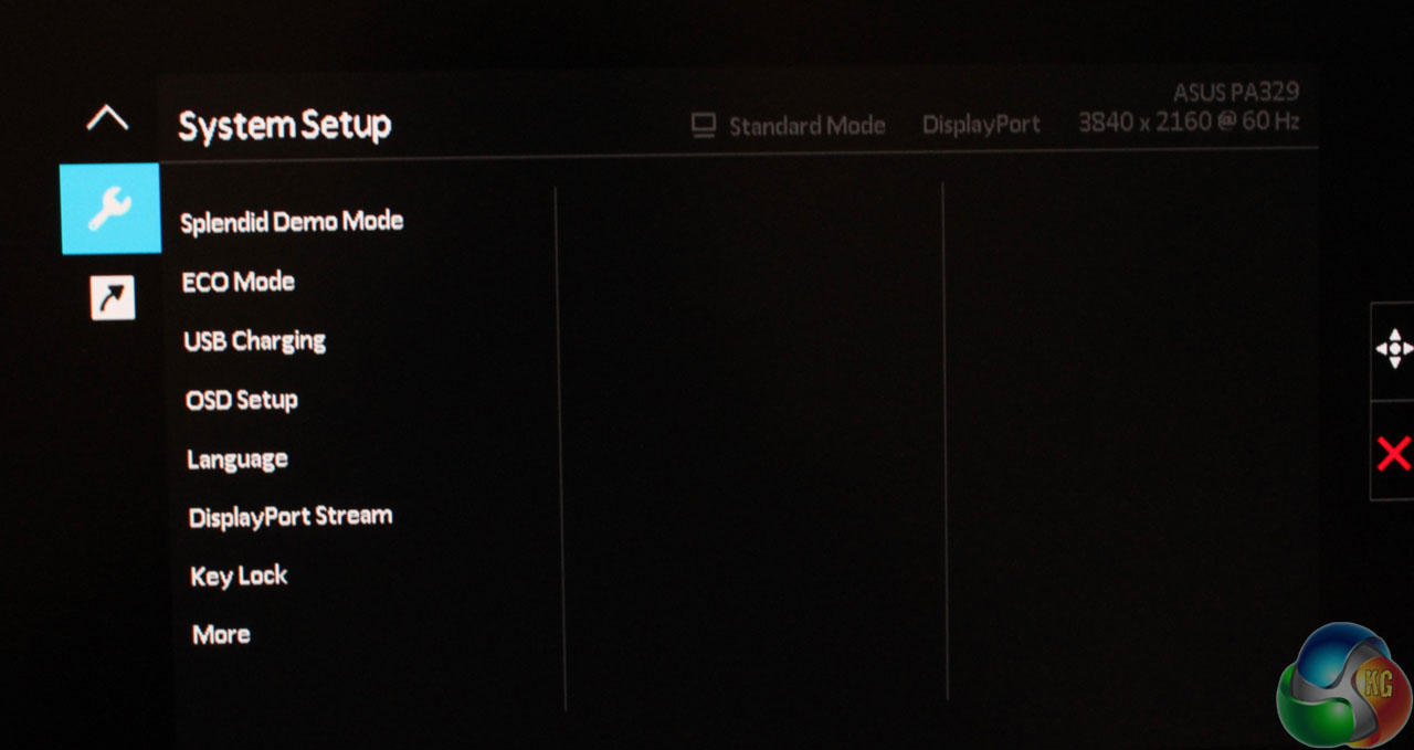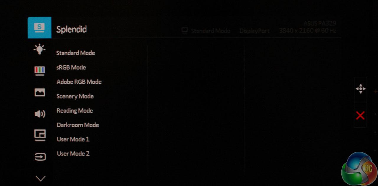 When you enter the main menu, the first screen you see is the Asus Splendid list of colour presets. These vary considerably in brightness, contrast and saturation levels, with a few other settings enabled as well.