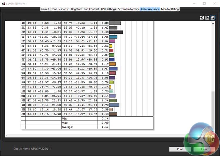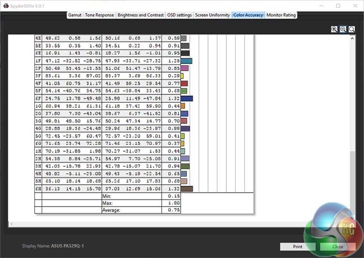 A Delta E of 0.75 (under 1) is really as good as it gets for graphics, so Asus gets another thumbs up here.