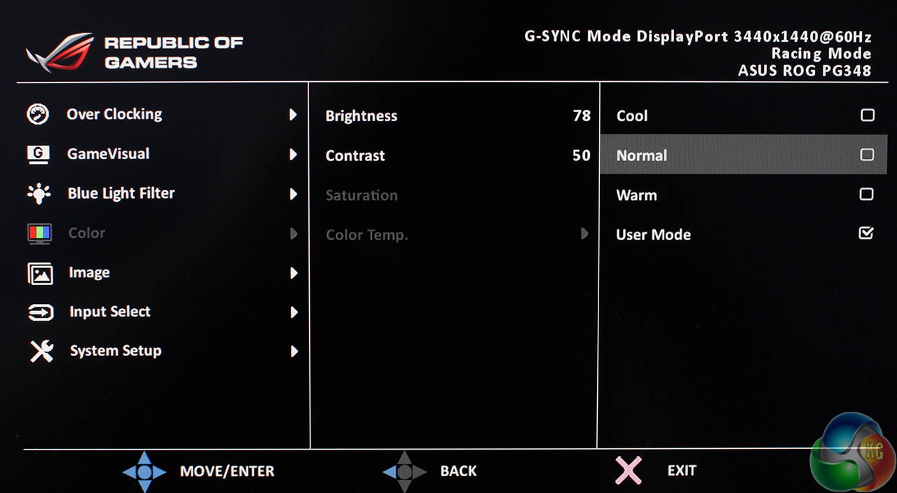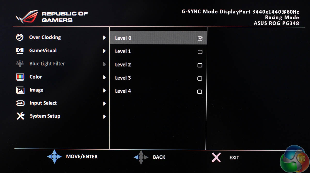 One of the best things about that screen was the OSD, menu structure and joystick used to control it. So it’s good to see Asus has pretty much lifted the entire menu system from that monitor and used it again here. That includes the use of a 5-way joystick, which is much easier for navigation than the traditional buttons used for moving up and down through menus.