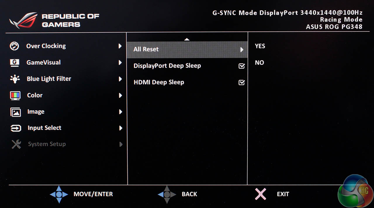 And there are a few more settings if you scroll down. Reset to default settings, and enable the Deep Sleep modes for HDMI and DisplayPort.