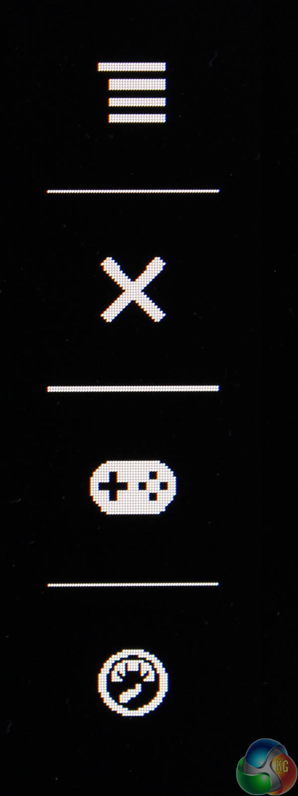 Above this is the joystick, where a quick press in any direction brings up the menu system, with all the main monitor functions listed.