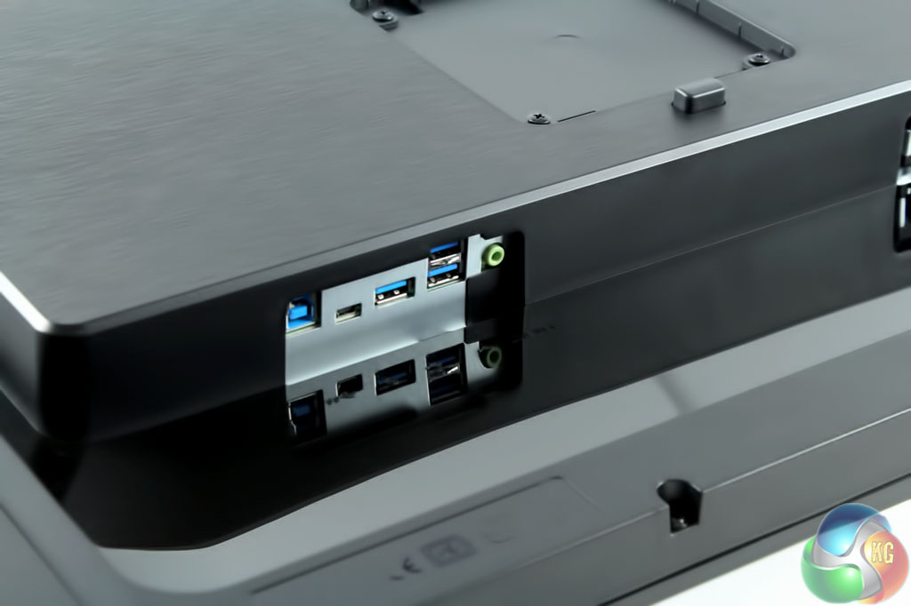 Another relatively uncommon feature of the BenQ BL3201PT is the positioning of the display connectors on the right-hand side of rather than the underside. This makes them much easier to access. You will also find an SD card slot and two of the five USB 3 ports here, with a 3.5mm headphone connector.