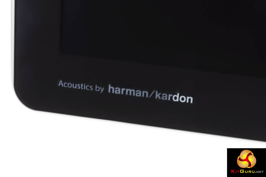 As is standard with all Dell displays, there’s a big circular logo at the back, one in the middle of the lower bezel at the front, and a Harman/Kardon logo on the left edge, advertising the inclusion of technology from this speaker brand.