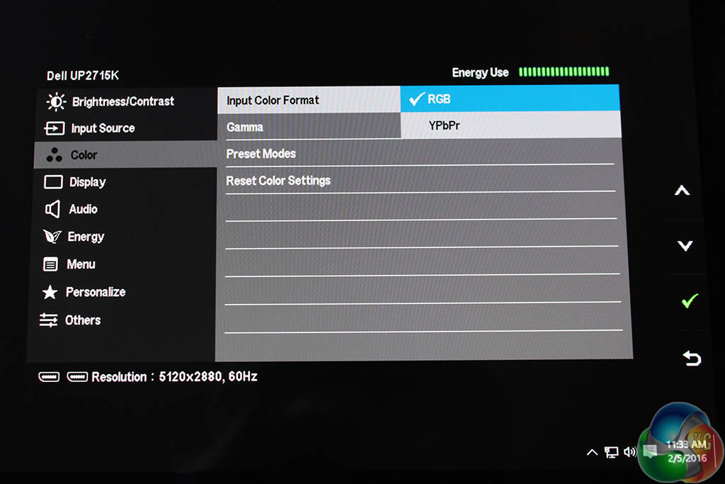 You can switch colour space between standard RGB and YPbPR (analogue component). Not a feature usually seen on displays.