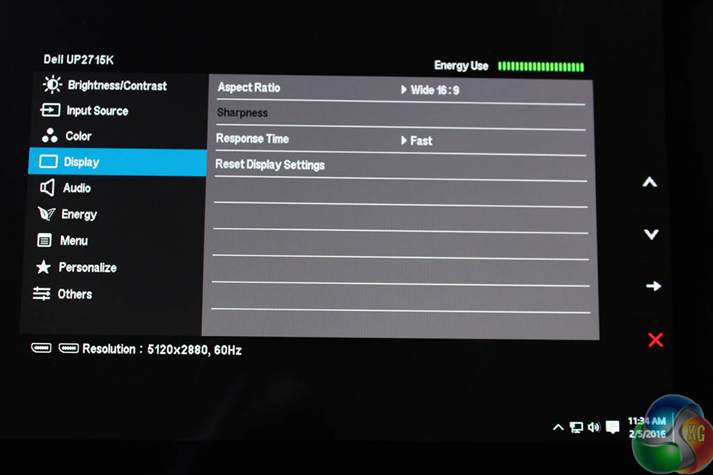 The display menu gives you access to response time and aspect ratio settings to force widescreen and so on, with another option to reset the display.