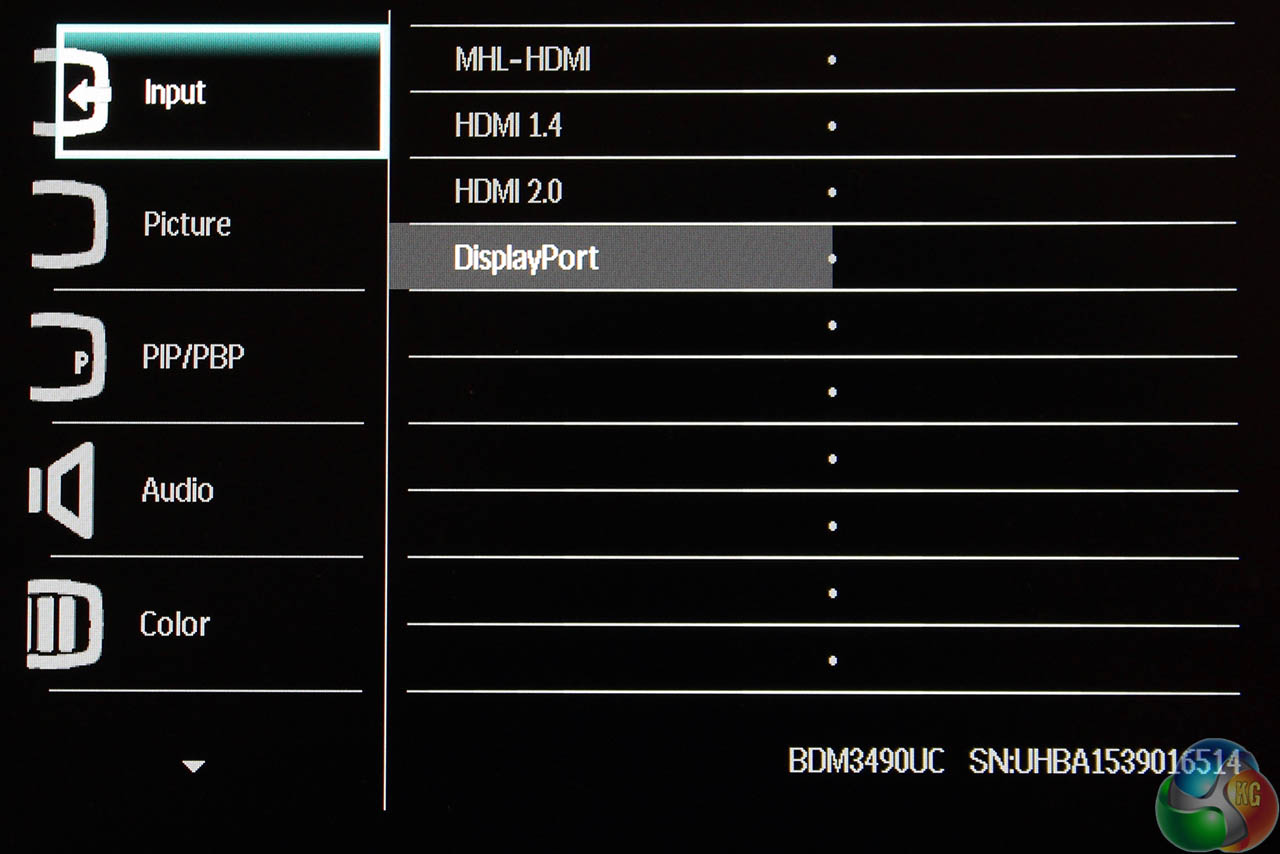 The final menu screen called Setup lets you reset the Philips Brilliance BDM3490UC to factory settings, view information and switch DisplayPort from version 1.1 to 1.2. By default it is set to 1.1, meaning a 30Hz refresh rate and choppy mouse movement.