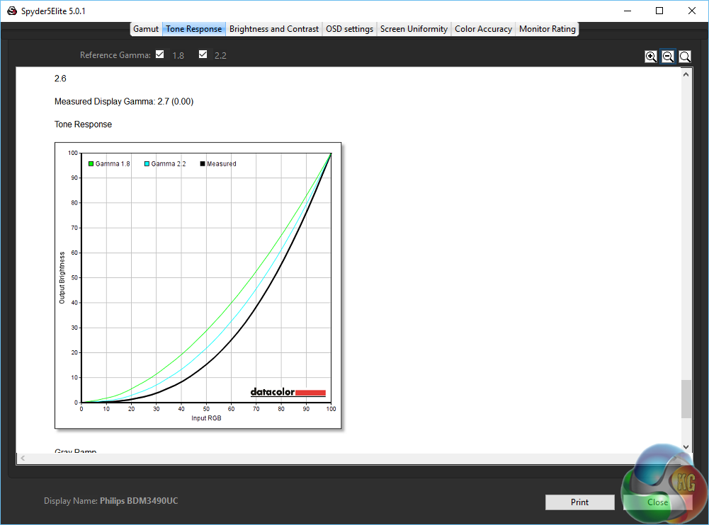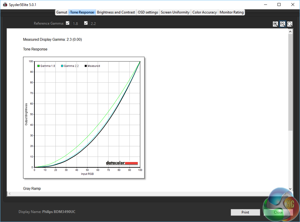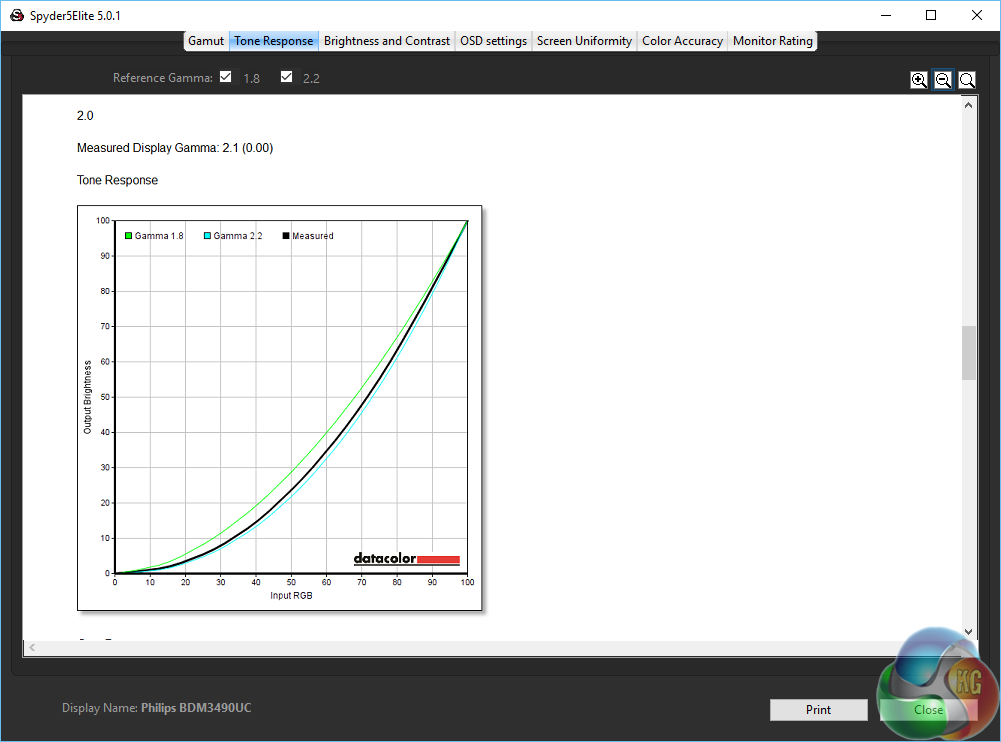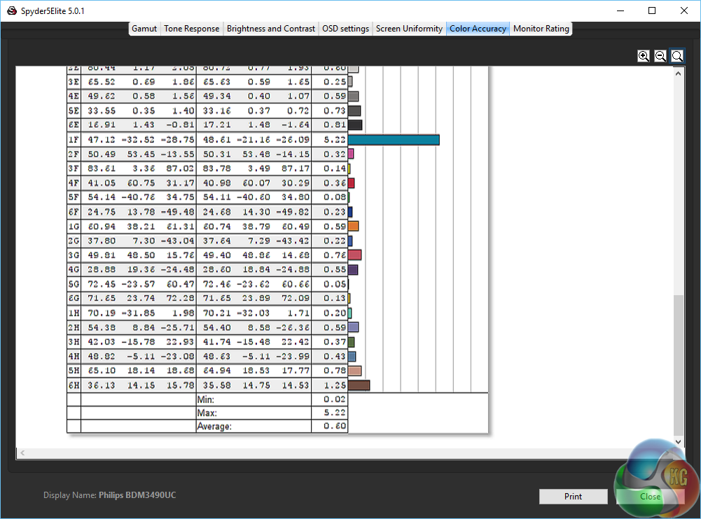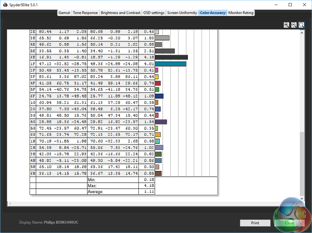As an (effective) 10-bit panel the Philips Brilliance BDM3490UC achieves great colour accuracy, with a Delta E under 1. An excellent result.