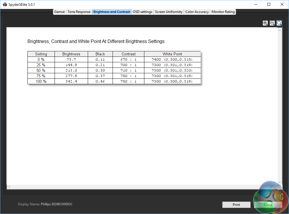 As always we put the Philips Brilliance BDM3490UC through its paces with a Spyder 5 Elite colorimeter. We first ran the tests with the screen using its default settings, straight out of the box, then again after calibration.
