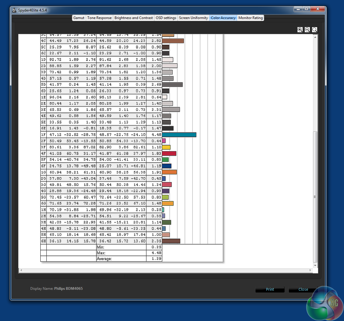 For testing we used a Spyder 4 Elite Colorimeter, with all the settings on the BDM4065 reset to default. The SmartImage preset was set to off and sRGB was disabled. Gamma was set to 2.2 and colour temperature to 6500K.