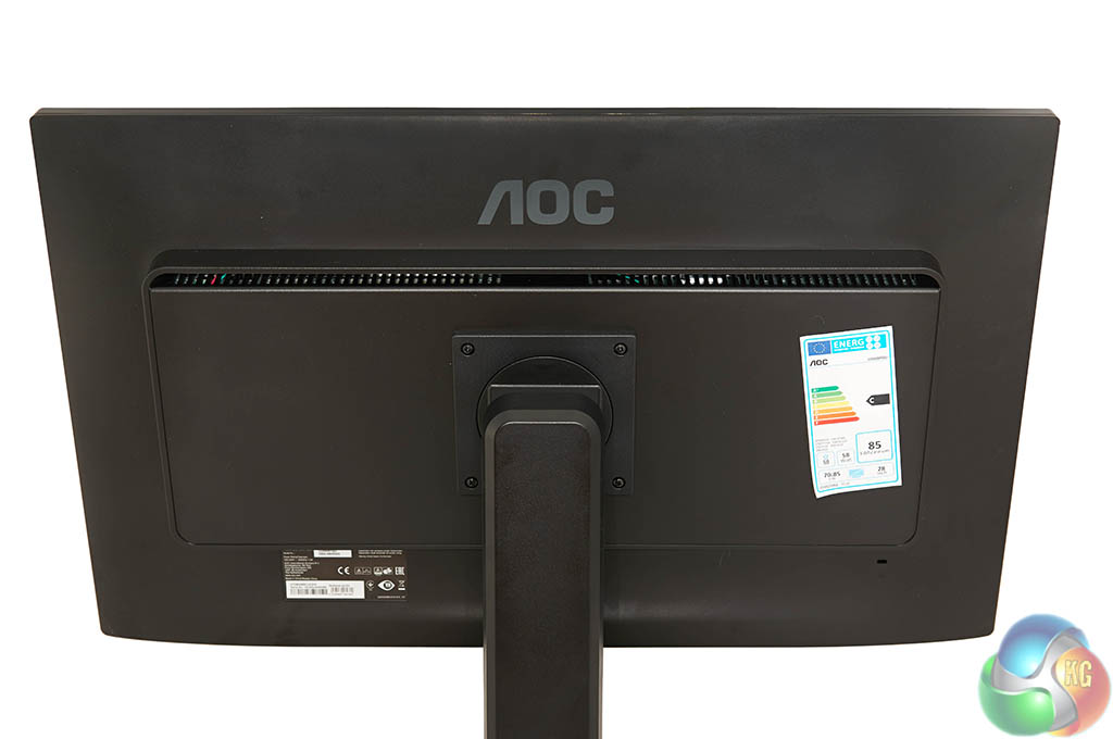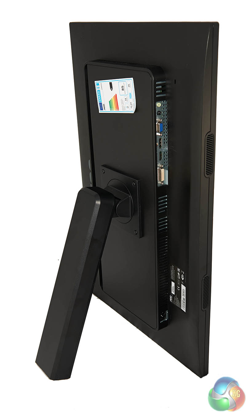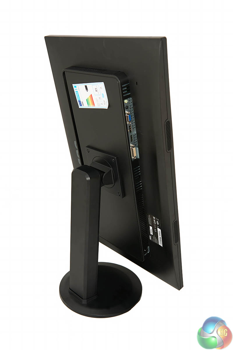 One side of the main rear panel has connectors for HDMI (MHL support included), VGA and DisplayPort connectors. There are also two 3.5mm audio jacks next to the video connectors. The power connector is on the other side of this panel. The AOC U2868PQU doesn't take a standard PC power cable, it is one of the smaller ‘8' shaped style power cables.
