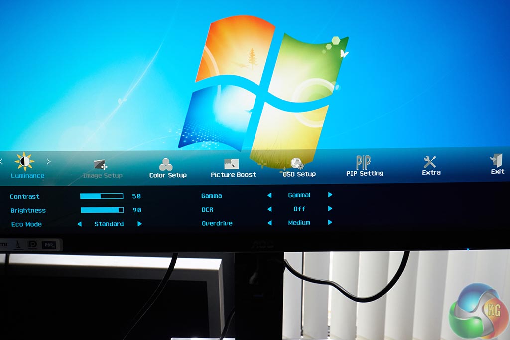 The luminance menu offers control over contrast, brightness, game, and pixel overdrive. ECO mode lets the user cater to power saving modes.