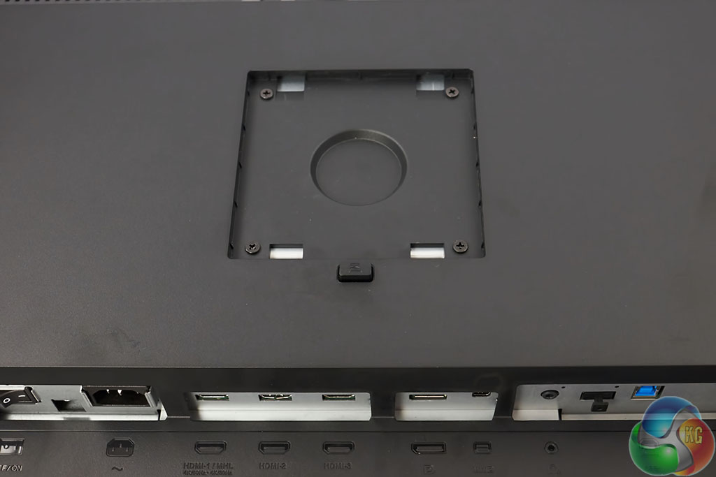 On the back of the panel is a power button and connector. Alongside are three HDMI ports, one of which is MHL 3.0 capable. A Mini DisplayPort (1.2) and DisplayPort (1.2) are next in line, alongside a headphone jack and USB header for connection to the hub. The MHL 3.0 input can handle a 30hz 4k signal from a compatible smartphone or tablet.