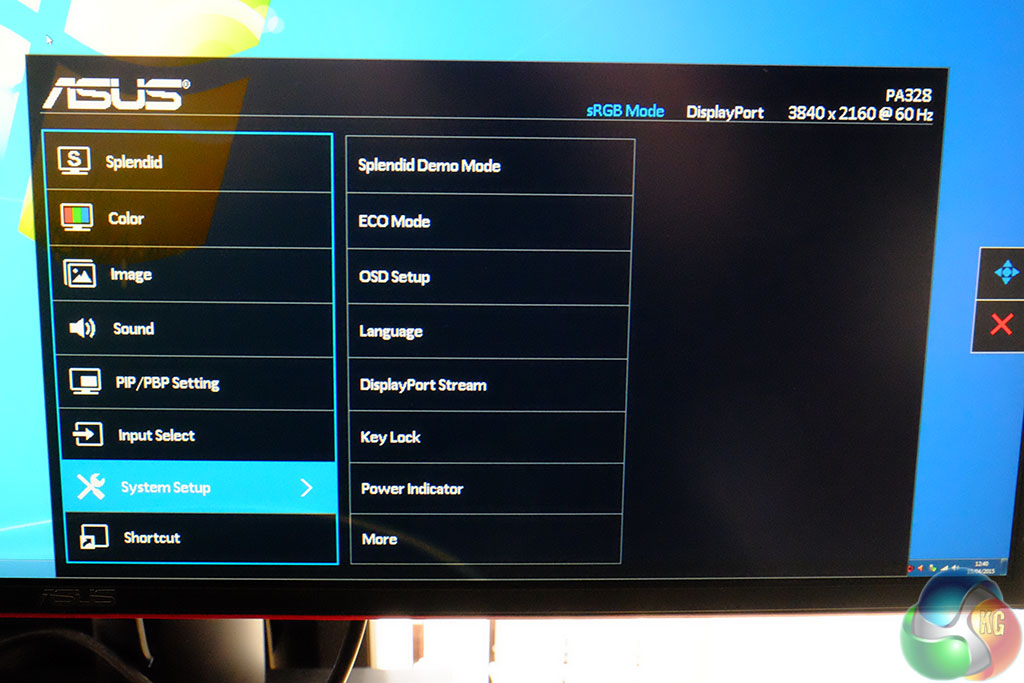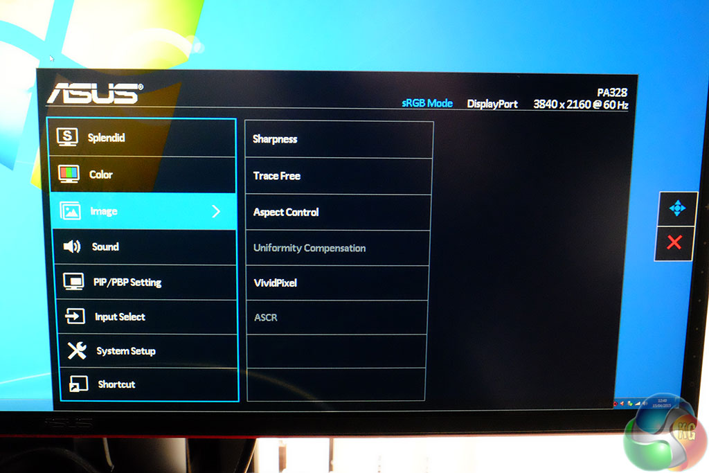 The ASUS PA328Q has one of the best onscreen implementations we have seen. The 5 way OSD joystick at the top of the I/O panel can be used to move selections in all directions, and can be pushed in for activation. You rarely need to use any of the other buttons for any settings.