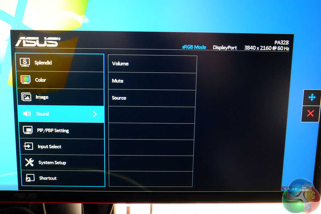The sound quality from the Asus PA328Q is nothing to write home about, but you can adjust volume, source and mute settings in here.