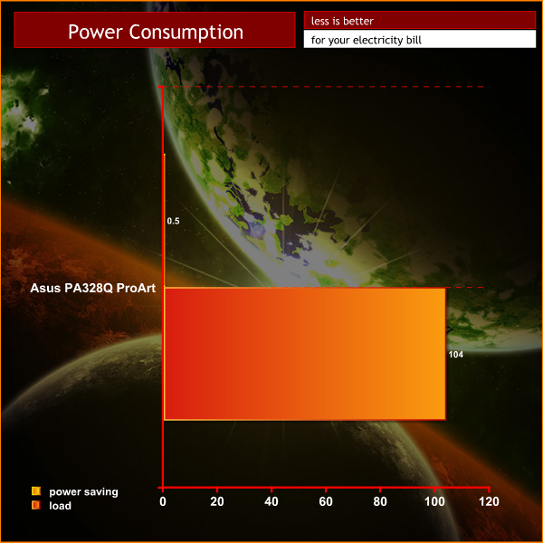 The PA328Q is a flicker free IPS Panel and the colour reproduction is excellent. We measured viewing angles of 178 degrees both on the horizontal and vertical axis. The panel is coated with a thin, grain free anti glare finish which helps produce a clear vibrant image, free of annoying back reflections. Colour reproduction is called from a 12 bit look up table.