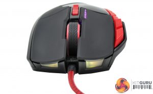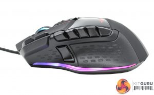 While the right hand side of the mouse offers a slight contour to rest the pinky finger, it's the left hand side of the mouse that's interesting. Here we see a heavy groove, built for the thumb to rest while emphasising on the macro buttons.