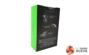 Looking at the back of the box gives a quick peek at what the mouse is about, boiling things down to performance, ergonomics and Razer’s own Hyperesponse switches, three key selling points that we will touch on later.