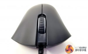 The scroll wheel houses two LED strips either side of the indented rubber grip, acting as a fifth button when pressed. The lighting is synced with the LEDs beneath the snakehead logo on the mouse’s rear, each shining Razer’s emerald green.