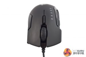 At the front of the mouse we find the scroll wheel, and just behind that is a single DPI cycle button.