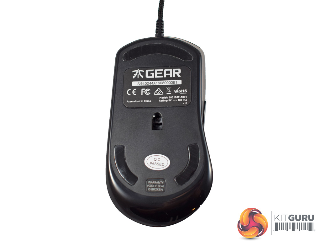 On the underside of the Clutch G1 we get a look at the PMW 3310 sensor – a high-grade offering from Pixart, it has a maximum DPI of 5000. There are also three mouse feet positioned here – two at the bottom, one at the top.