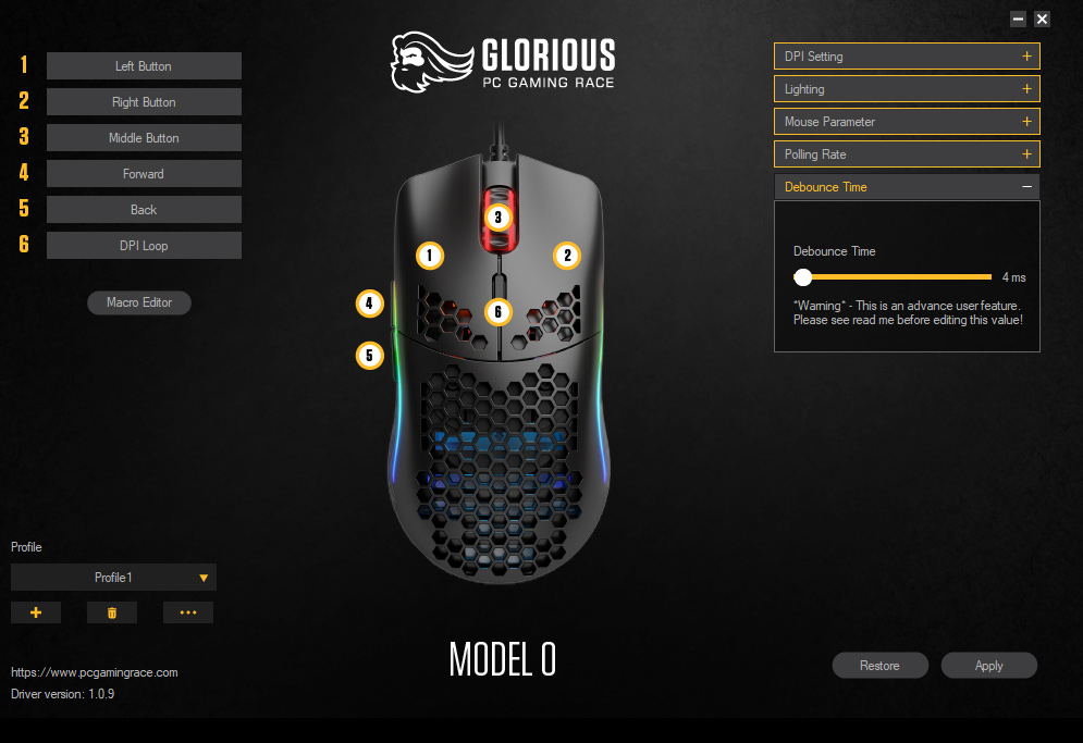 Overall, this isn't as polished an experience as you'd get from Razer Synapse or Corsair iCUE, but the fundamentals are there with DPI and LOD options. On top of that, the Model O does have on-board memory so the software can be used once and then uninstalled if you'd rather not have it on your PC.