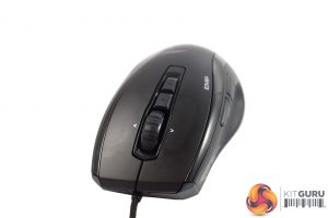 At the front of the mouse we find the 4D scroll wheel – meaning it can scroll, be pressed down and be flicked left and right for added functionality. Below the wheel are two DPI buttons, one for stepping up and one for stepping down.
