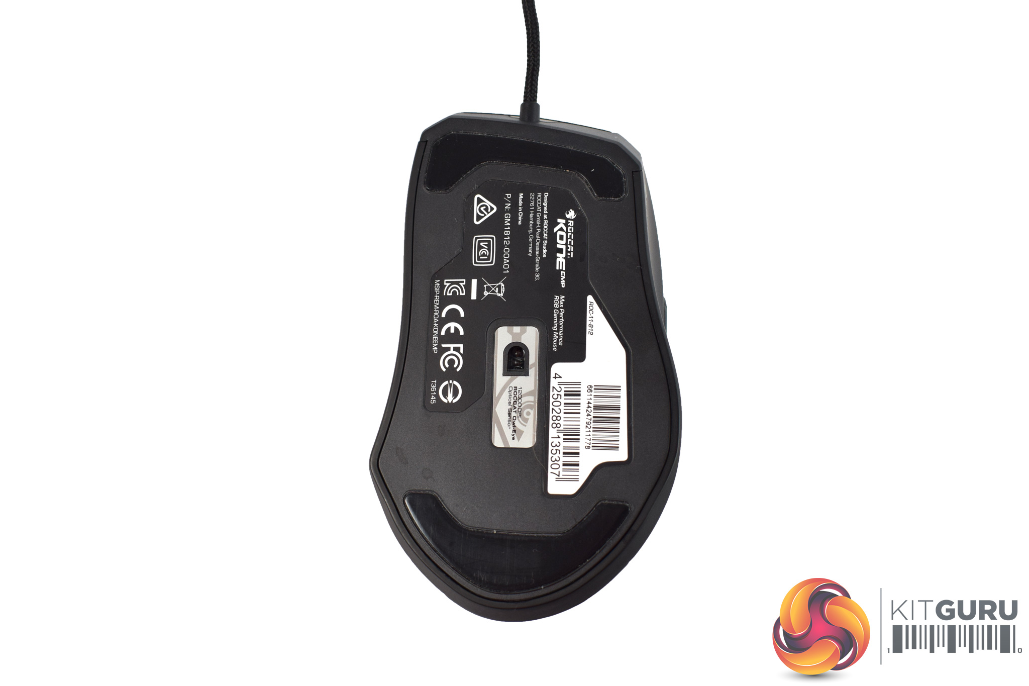 Flipping the mouse over, we get a look at the two glide pads as well as the sensor. The sensor is an interesting one as it is branded as Roccat's own Owl Eye unit, though I would imagine it is a modified version of Pixart's PMW 3360 sensor.