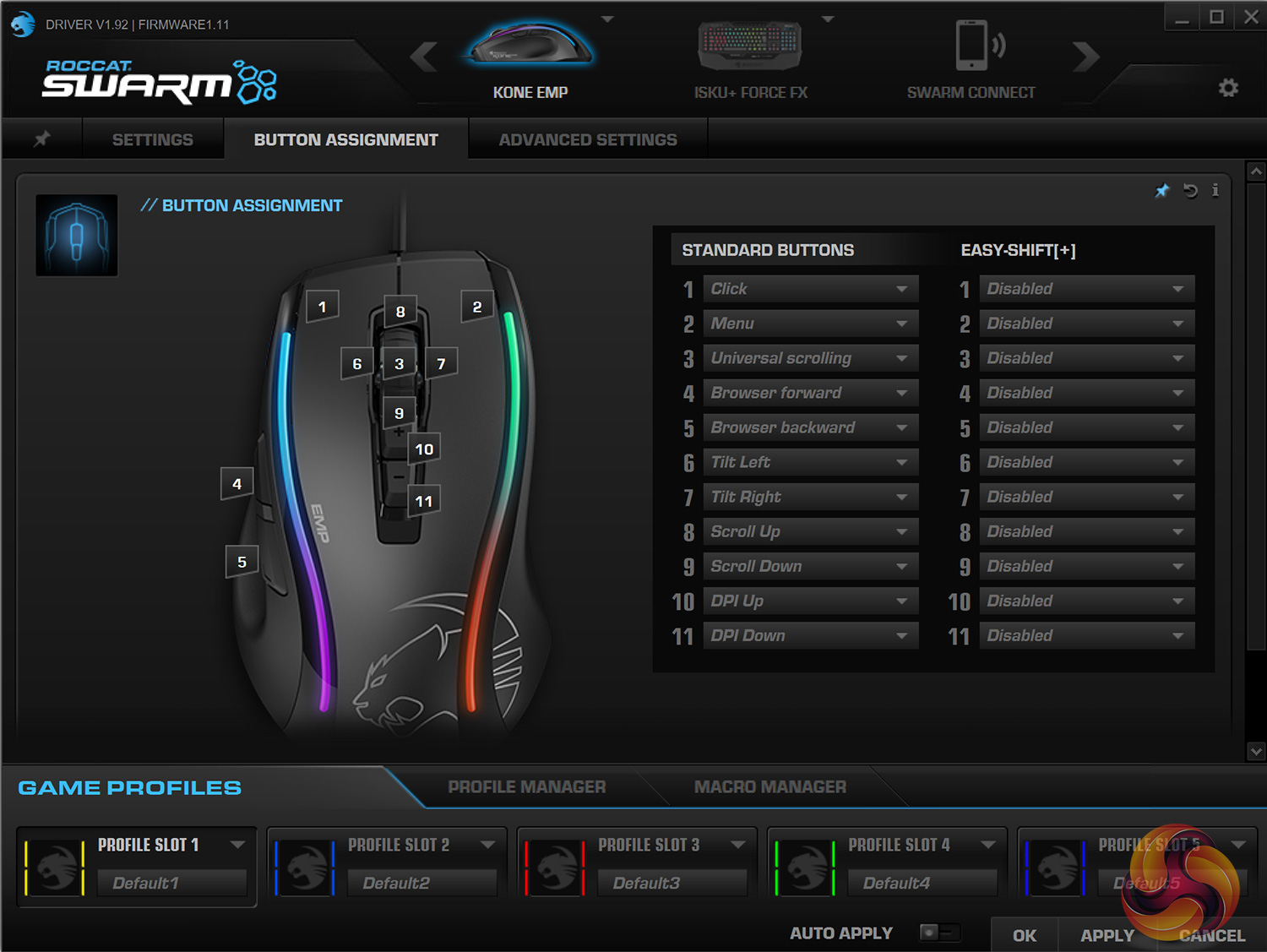 Speaking of extra functionality without extra buttons, Easy-Shift[+] is another great feature. Essentially, it lets you double the amount of functions that can be assigned to the mouse. It is also quite simple: one button acts as the Easy-Shift[+] modifier which, when pressed in tandem with the other mouse buttons, creates a whole new layer of button support. For example, I mapped the Easy-Shift[+] modifier to one of the thumb side buttons, and then mapped the DPI buttons to change the mouse's profile on-top of their regular DPI-switch functionality.