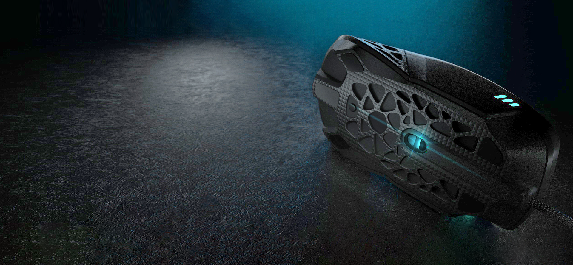 The Zephyr gaming mouse “fits comfortably within your hand” thanks to its “geometric shell” and “ergonomic symmetric” design, which maintains the structural integrity of the perforated mouse casing. The perforations of the mouse's structure were made to reduce the mouse's weight, and allow the user's palm to breathe, resulting in better mouse handling. The casing also features sweat, fingerprint and grease resistant properties to further improve grip over time.