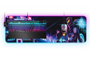 There are three themed SteelSeries Neon Rider products: the QcK L Neon Rider Edition and the QcK Prism XL Neon Rider Edition mousepads, and the Sensei Ten Neon Rider Edition mouse.