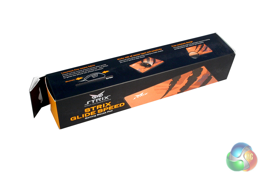 The Strix Glide Speed Mat ships with similarly high quality packaging. Sadly it does not feature the two little texture touch pads which I have come to appreciate on other mouse mat boxes – these let you know what the material of the mat inside is actually like.