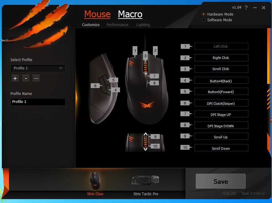 The software is clean and easy to navigate, allowing comprehensive button remapping and DPI step adjustments